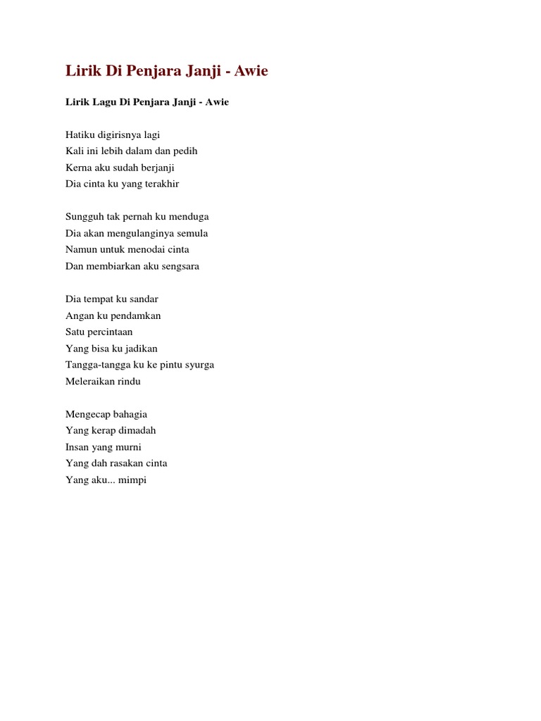 Awie Di Penjara Janji Lyrics Lyrics Com